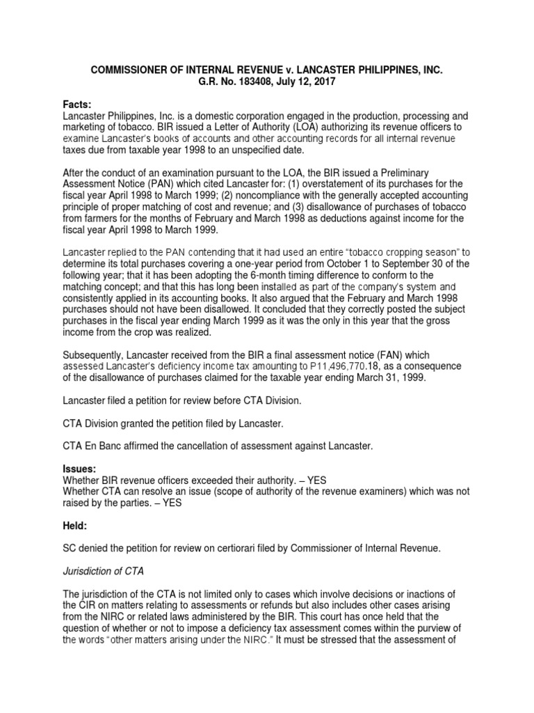 Cir V Lancaster Fiscal Year Internal Revenue Service