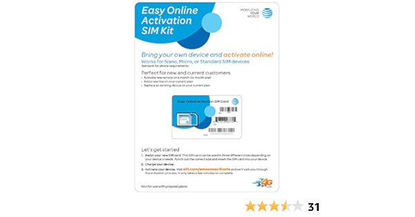 Amazon Com At T Easy Online Activation Sim Kit Postpaid