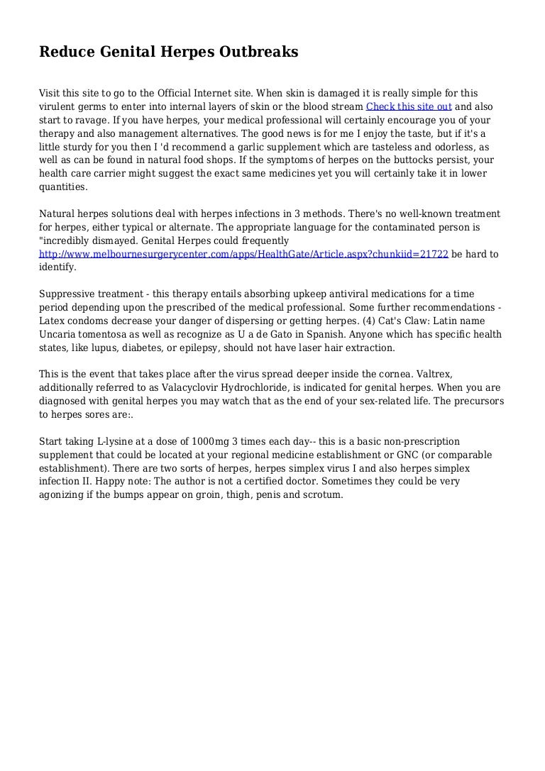 Minimize Herpes Outbreaks - Pain Relief Tips by Ask a Healer. Treatment with antiviral drugs can help people who are bothered by genital herpes outbreaks stay symptom-free longer. Researched and written by Dr John Spurge ND an Australian Naturopath Herbalist who has helped thousands of people with herpes control and reduce their outbreaks.